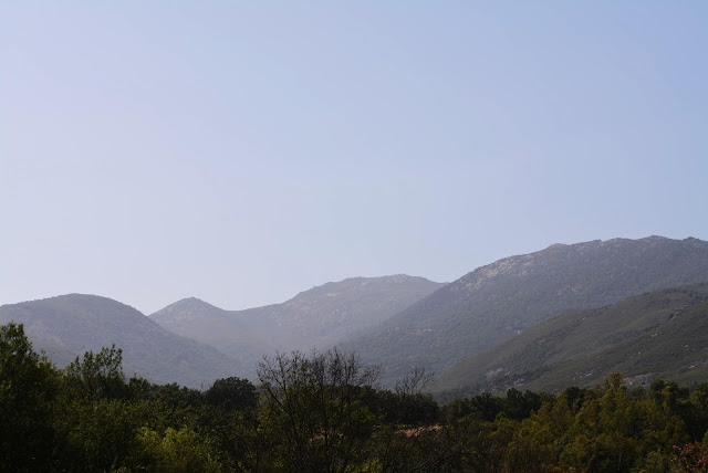 El calor en estas tierras perfila un finísimo lienzo de calima sobre los 2591 metros del Pico Almanzor que preside y domina este magestuoso Valle de la Vera,
