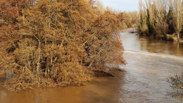 se asoma al imponente cauce del Duero que baja crecido y con furor tras un acelerado deshielo a consecuencia de las altas temperaturas y la cantidad de nieve que nos dejo la borrasca "Filomena".