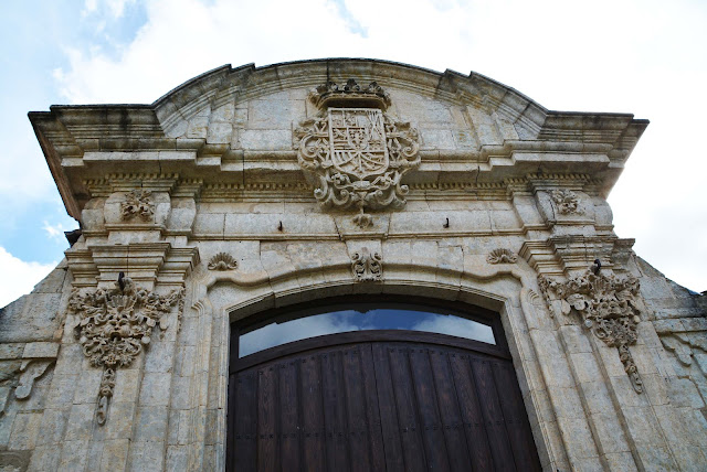 que luce su portada con escudos de armas bajo el alfiz rematados con un león y un águila, emblemas de este linaje.