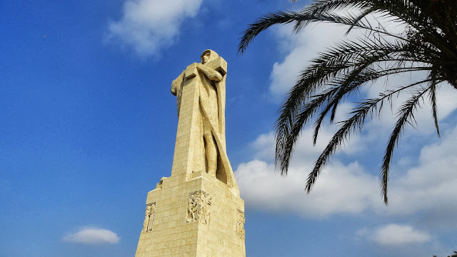 y el enorme Busto de Colón localizado bajo la exuberante arboleda de la Plaza Pilar Pulgar.
