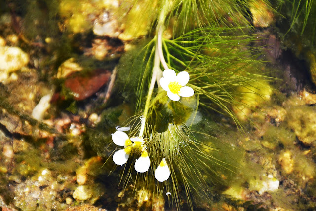 Los incipientes arroyos que cruzamos dibujan el fulgor y los destellos de varios ranúnculos